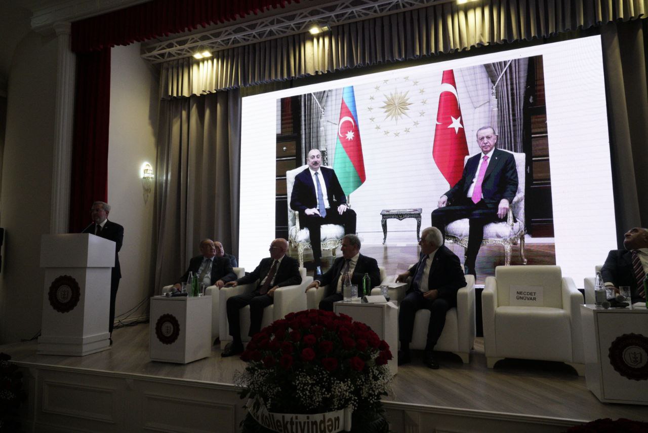 Milletvekilleri, akademisyenler ve öğrencilerin katıldığı konferansta Türkiye, Azerbaycan ve Ankara Üniversitesi ilişkilerini anlatan bir sunum yapan Ünüvar, konuşmasına, Azerbaycan Kooperasiya Üniversitesinin 60. yılını kutlayarak başladı.